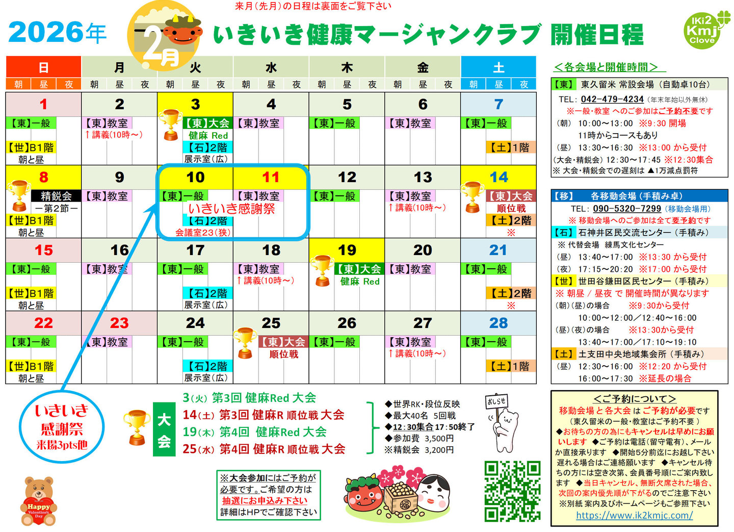 ※ 抽選結果は開催前月 1日から5日までにカレンダー下にPDFファイルで発表致します また東久留米会場内に掲示致します