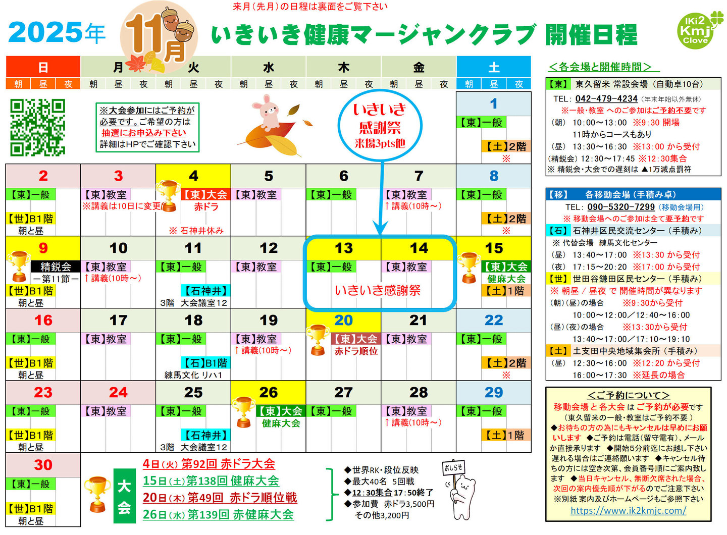 11/15(土) 第138回 健康麻将大会