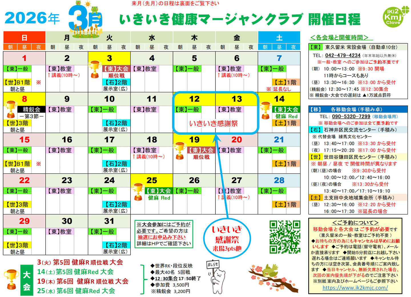 ※ 抽選結果は開催前月 1日から5日までにカレンダー下にPDFファイルで発表致します また東久留米会場内に掲示致します